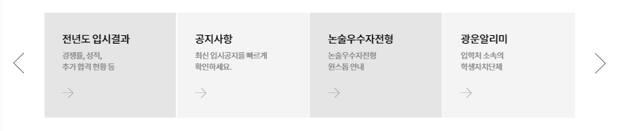 (공지사항) 공지사항의 경우는 수시, 정시, 재외국민 등 전형별 주요 알림 예를들어, 논술고사 시간 안내, 수상경력 제출방법, 대기실 입실시간 안내, 합격자발표 등입니다.