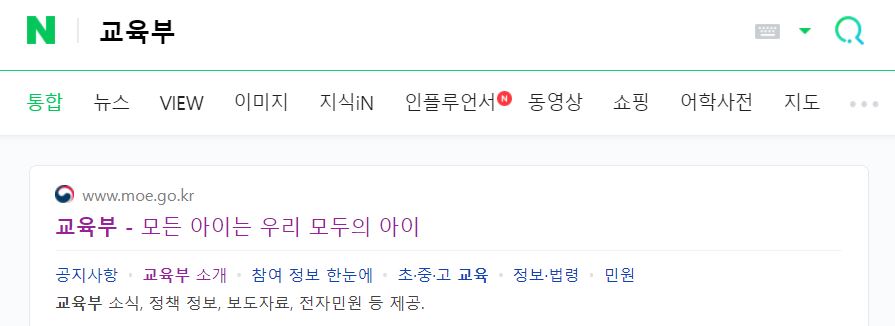 교육부 홈페이지는 포털 검색창에서 교육부를 입력하면 주소가 바로 나옵니다.