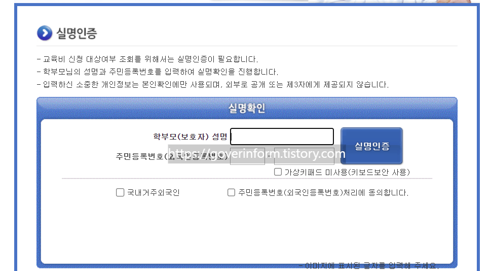 교육비 신청 대상여부 조회 http://oneclick.moe.go.kr