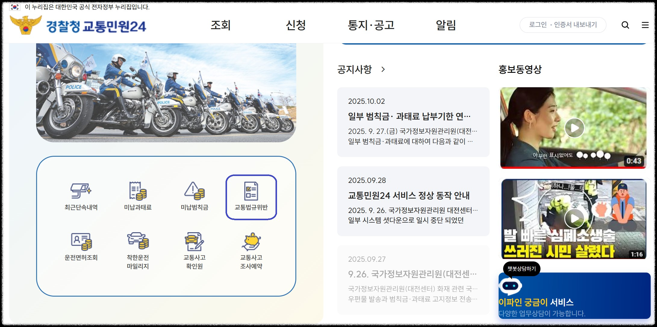 교통민원 24는 교통법규 위반 신고 사이트로 경찰청 사이트예요. PC, 모바일 모두 지원하며 교통 범칙행위를 온라인으로 신고할 수 있어요.