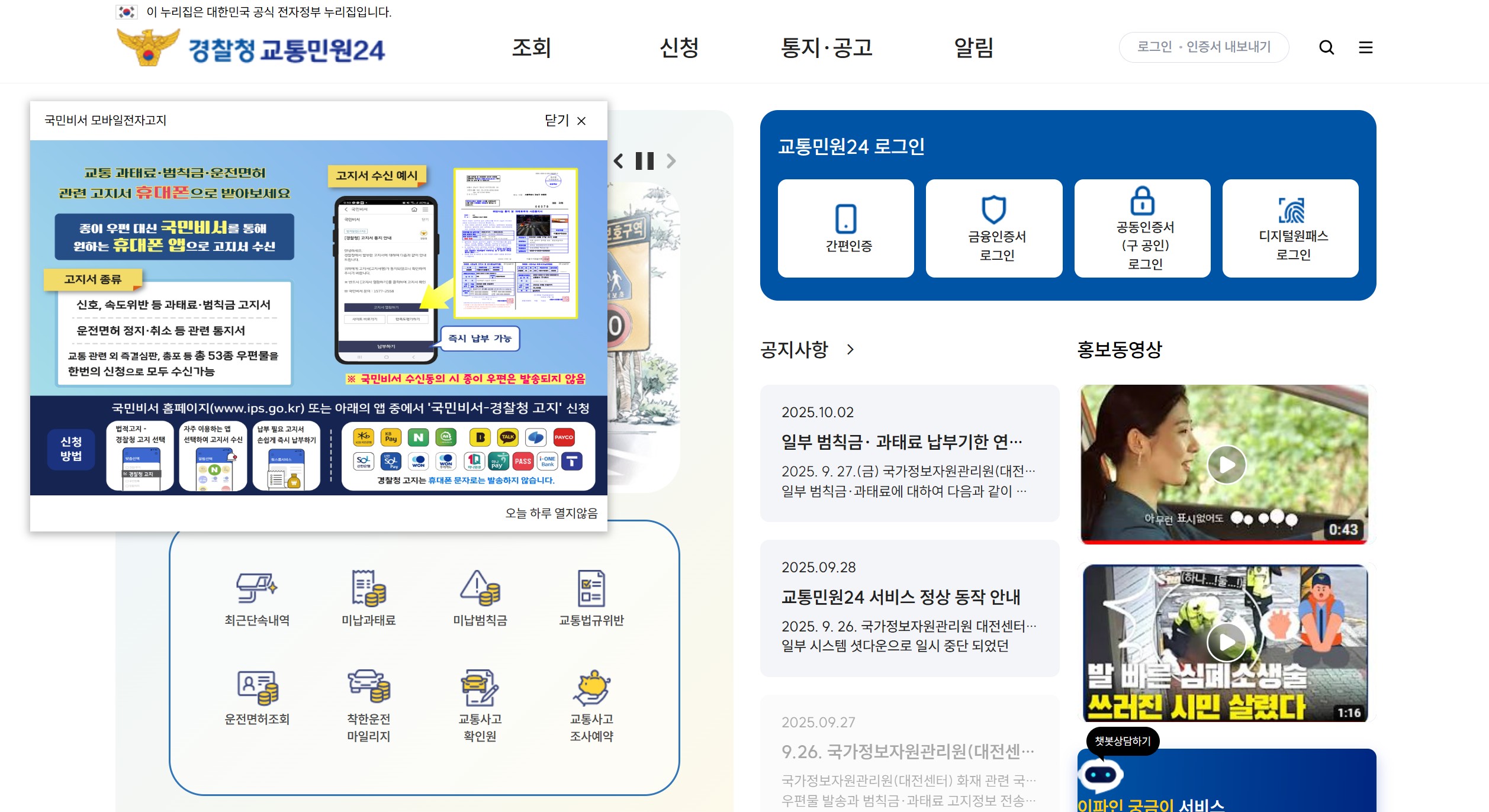 먼저, 경찰청 교통민원 24 홈페이지에 접속을 합니다. 경찰청 교통민원 24 여기를 바로 클릭해서 접속해도 되고, 직접 검색해서 접속해도 됩니다.