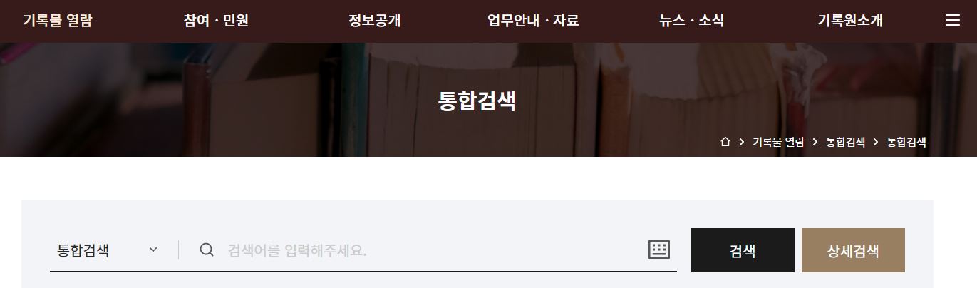 구글이나 평소 이용하는 홈페이지 검색창에 국가기록원을 입력하면 국가기록원 홈페이지 주소 (https://www.archives.go.kr)가 나오는데 여기에 접근하면 국가기록원 홈페이지 첫 화면을 볼 수 있습니다.