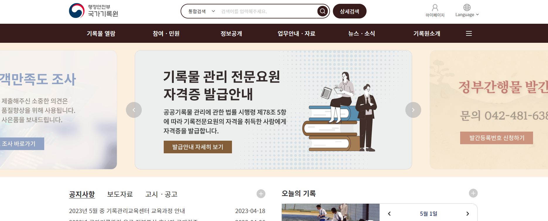 여기에서는 국가기록원 홈페이지 바로가기와 홈페이지에서 볼 수 있는 유용한 정보를 알려드립니다. 이용관련하여 문의사항은 아래 댓글창에 남겨주심 답변을 드립니다.