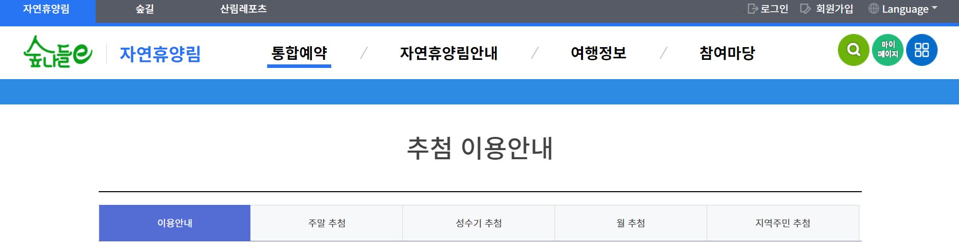 국립자연휴양림관리소 홈페이지 바로가기
