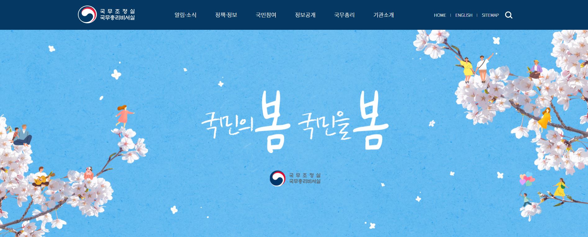 국무총리비서실 홈페이지 첫 화면은 다음과 같습니다.