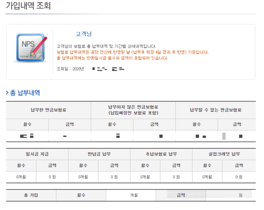6) 국민연금 가입내역을 조회하면, 가입여부와 그간 납부한 연금보험료에 대한 상세 내역을 확인할 수 있다.