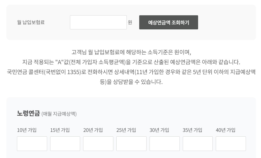 소득 그리고 가입기간을 원하는 대로 입력해서 예상연금액을 확인합니다.