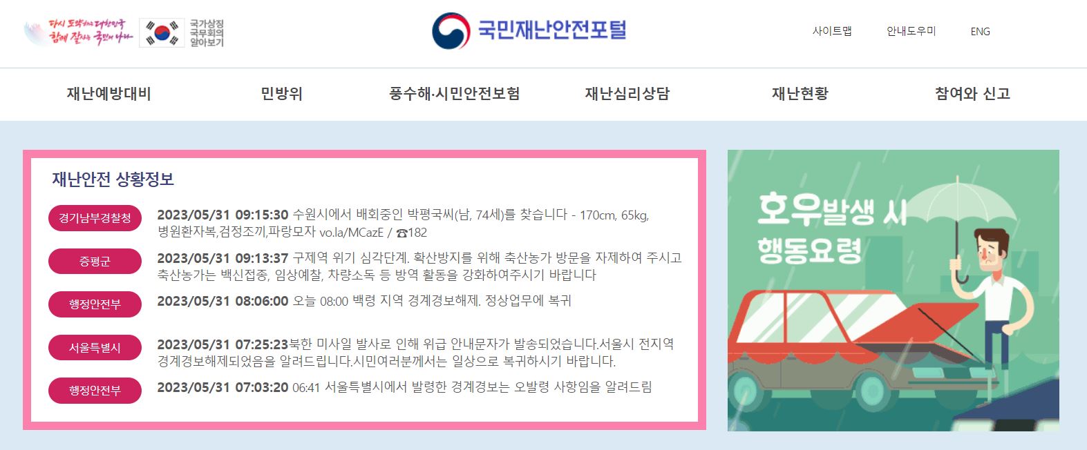 1. 국민재난안전포털 홈페이지 바로가기