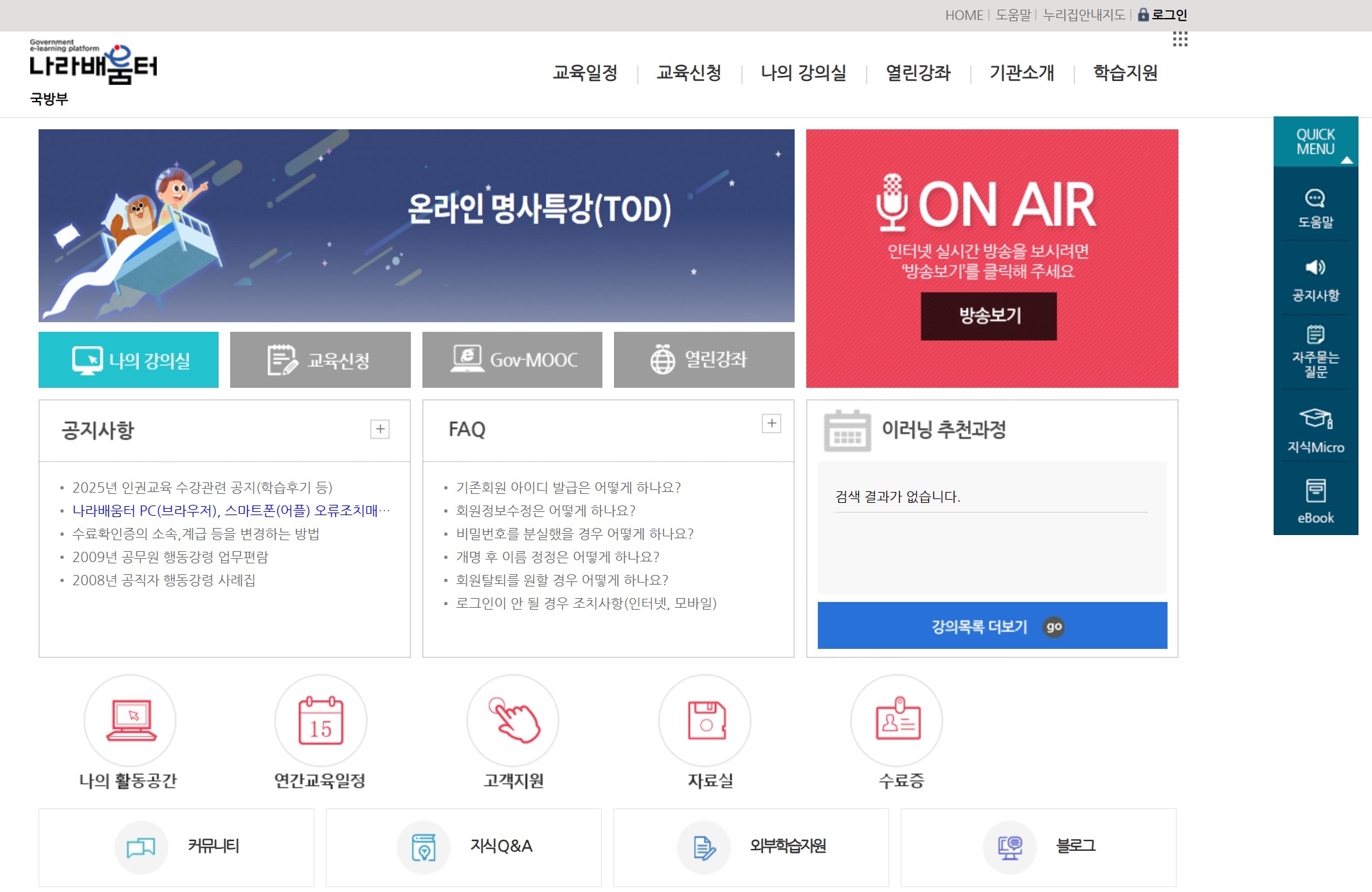 지금까지 국방부 나라배움터 온라인 교육 수강 방법 및 나라배움터 홈페이지 바로가기에 대해 알아보았습니다. 문의사항은 나라배움터 이용문의 (mnd.nhi.go.kr/helpdesk)를 이용하면 도움받을 수 있습니다.