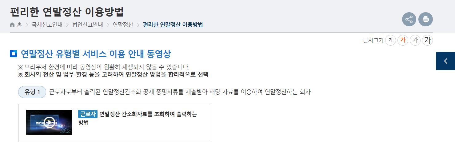 세금 모의계산도 할 수 있고 홈페이지에서 자세하게 연말정산을 하는 방법에 대해 안내를 받을 수 있으니 필요하신 분은 아래 홈페이지에서 확인하실 수 있습니다.