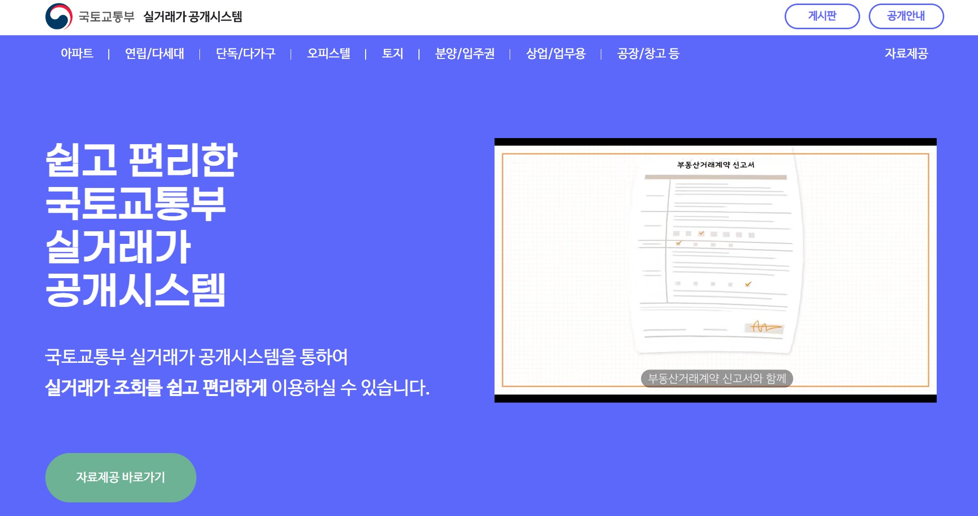 국토교통부 실거래가 공개시스템을 이용하면 실거래가 조회를 쉽고 편리하게 이용할 수 있습니다.