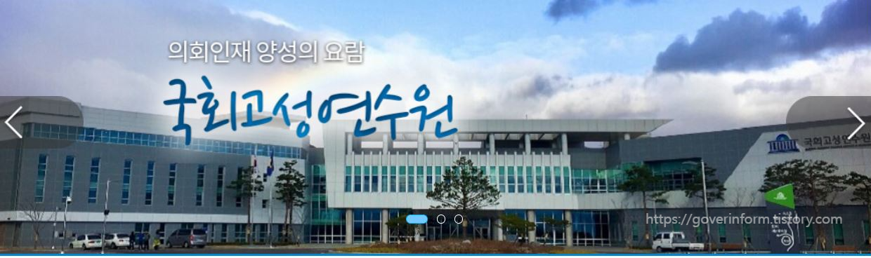 국회사무처 나라배움터 의정연수원과 고성연수원은 의회인재 개발기관으로 국회의원, 국회공무원 등 국회 구성원에 대한 교육훈련 실시 및 지방의회 시민 대상 연수프로그램을 운영하고 있으며 국회사무처 홈페이지에서 이용안내 및 예약이 가능하다. 국회사무처 나라배움터 로그인시 아이디 또는 인증서 인증방식 두가지 중 선택 가능하며 공동활용기관 학습자는 각 기관 학습사이트와 동일한 아이디 및 비밀번호로 로그인 가능하다. 기존 주민번호 아이디 사용자의 경우에는 새로운 아이디 계정 발급시 이용 가능하다.