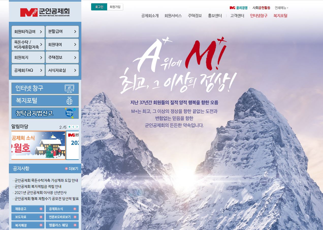 군인공제회 홈페이지 접속시 보게되는 첫화면입니다.