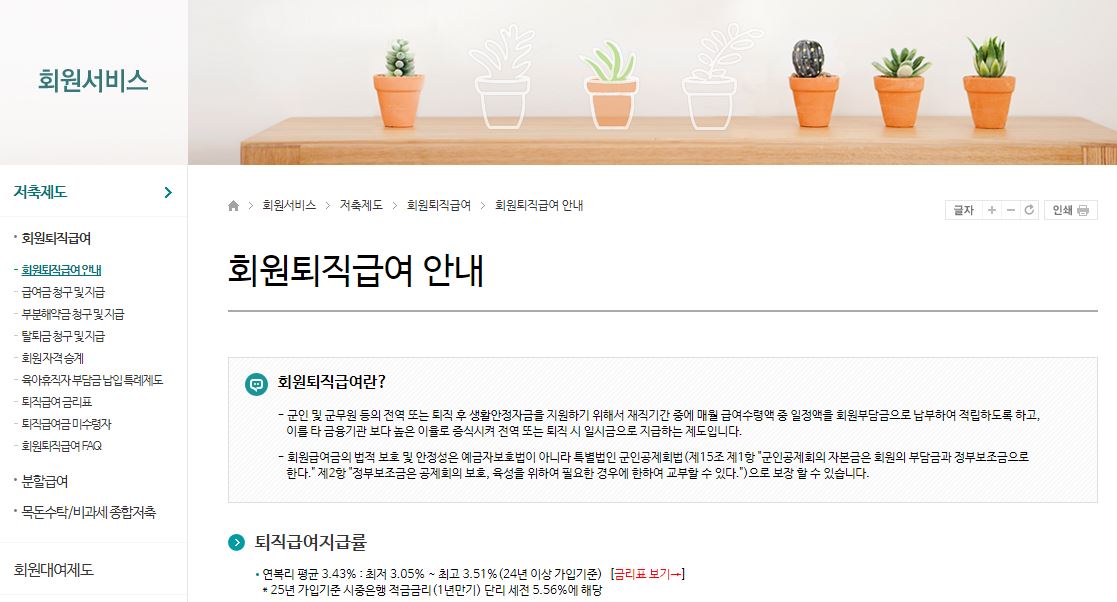 군인공제회 홈페이지 첫화면 상단의 회원서비스를 클릭하면 아래와 같이 회원이 이용할 수 있는 서비스가 총정리가 되어있습니다.
