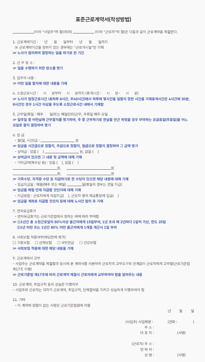 그럼 이어서 표준근로계약서 작성 방법에 대해 알아볼게요.
