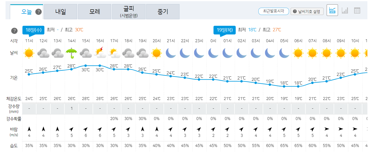 오늘 날씨뿐 아니라 중기예보도 있으니 약 1~2주 동안의 날씨를 확인할 수 있습니다.