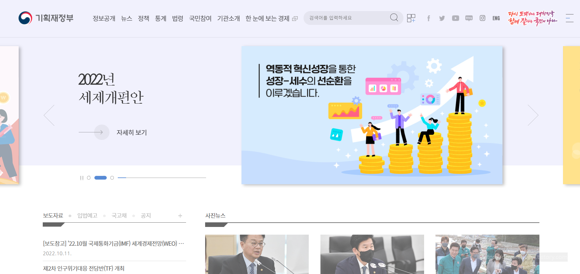 기획재정부 홈페이지 첫화면입니다.