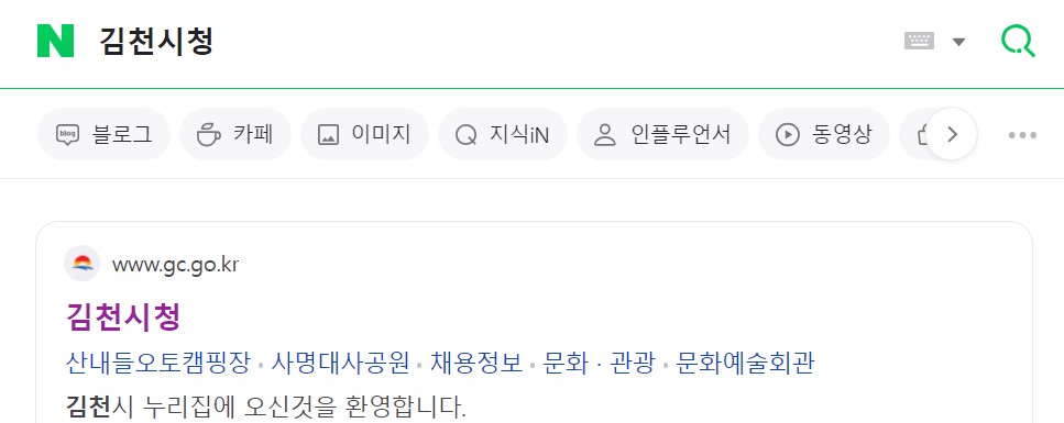 네이버, 다음, 네이트, 빙과 같은 홈페이지에 김천시청을 입력하고 검색하거나 아래 바로가기를 이용하세요.