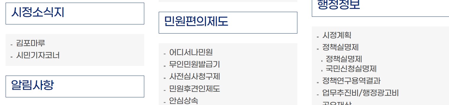 김포시청 홈페이지에는 다양한 서비스가 있습니다.