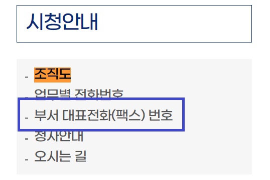 김포시청 환경과, 세무과, 여권과 등 부서 전화번호는 김포시청 홈페이지-시청안내-부서 대표전화(팩스) 번호에서 확인할 수 있습니다.