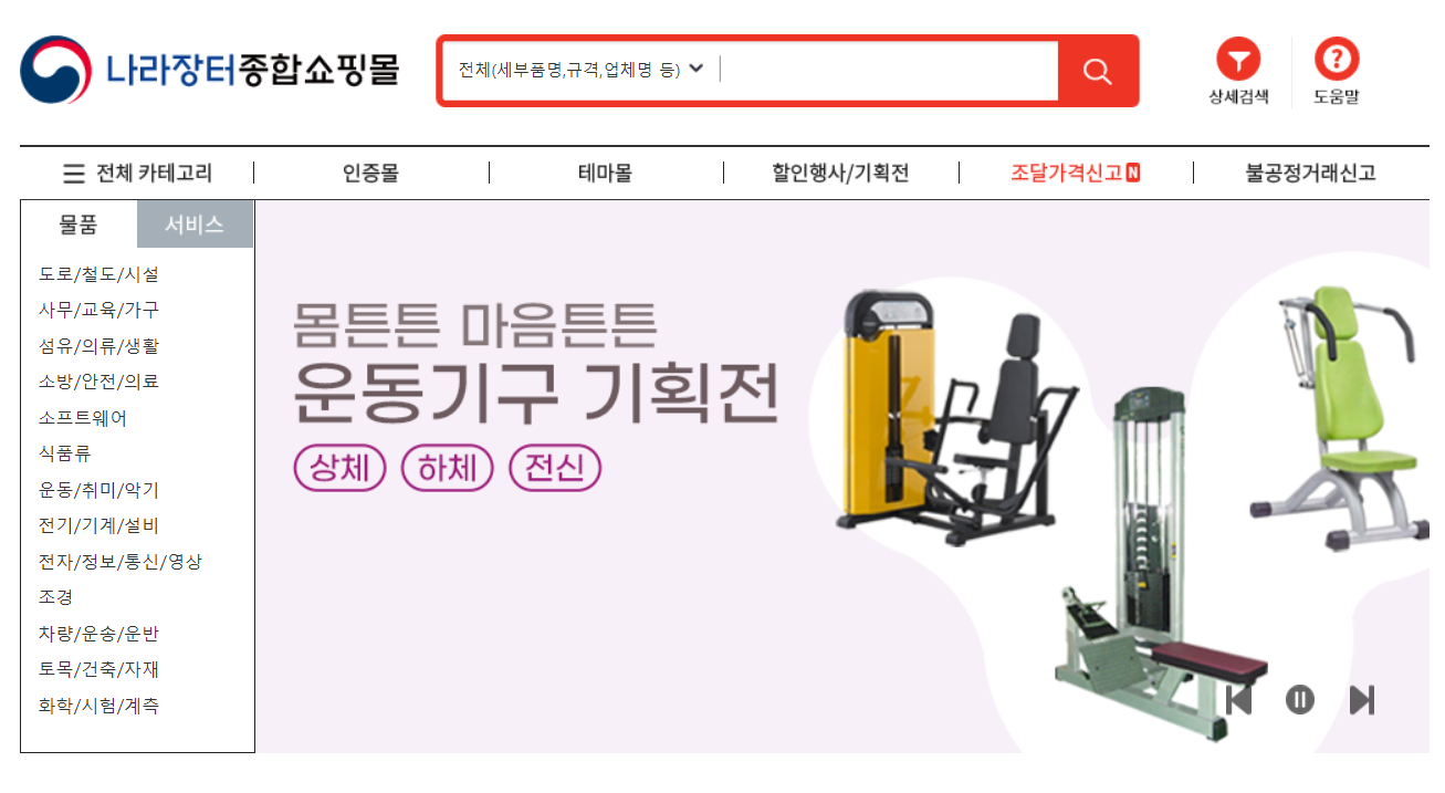 나라장터 종합쇼핑몰의 첫화면입니다.