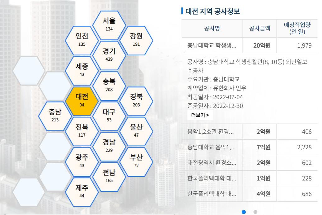 나라장터에는 건설근로자를 위한 일자리알리미 서비스도 있습니다. 일자리를 구하는 분들께 유용한 정보입니다.