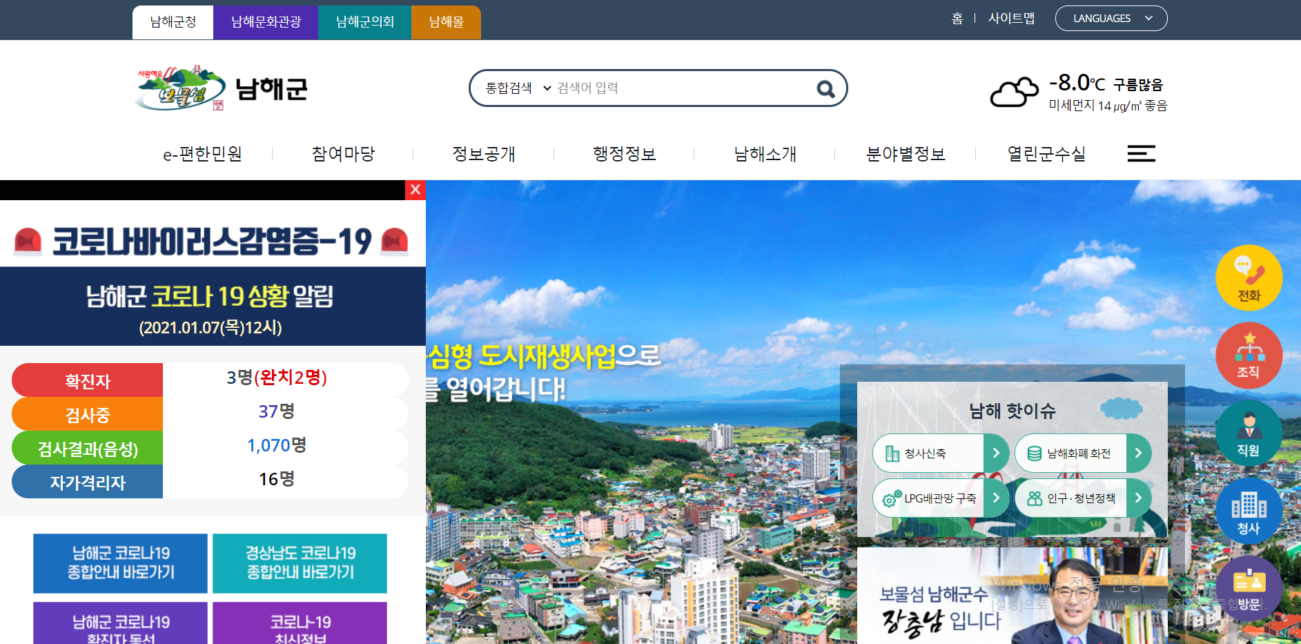 유용한정보가 많아 인상깊은 남해군청 홈페이지입니다. 필요하신 분은 방문하시어 유용한정보를 얻으시기바랍니다. 감사합니다.