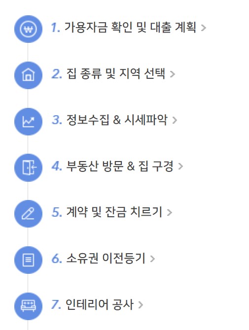 매매/전월세/청약 등으로 집을 구할 때 어떤 절차대로 하면 좋을지 조언을 얻을 수 있습니다.