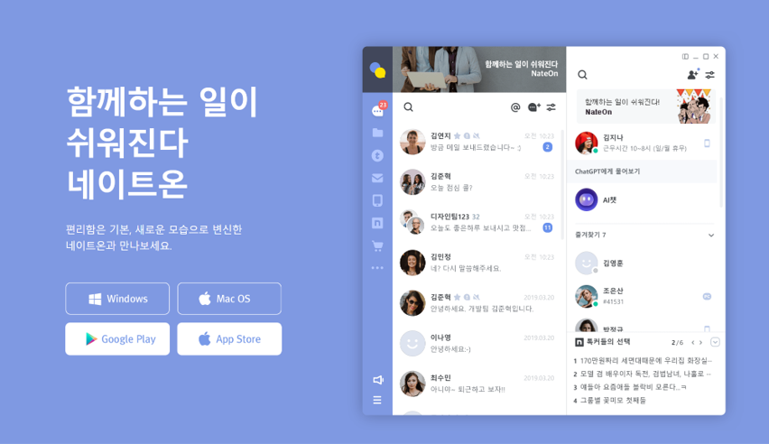 편리한 메신저는 기본, 새로운 모습으로 변신한 네이트온과 만나보세요.