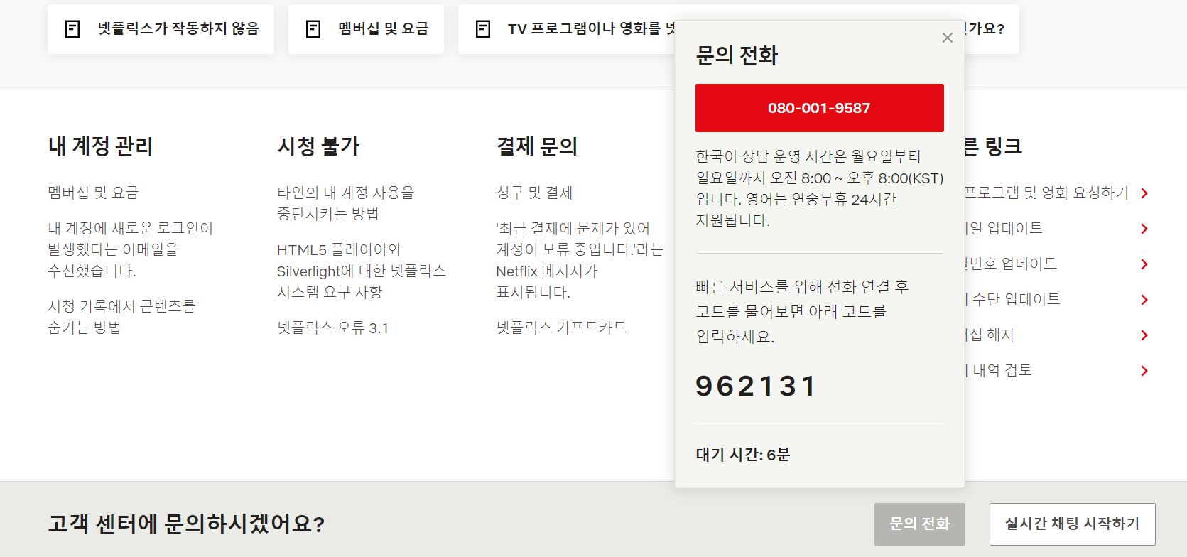고객센터는 넷플릭스 홈페이지 첫화면 하단에 있습니다.