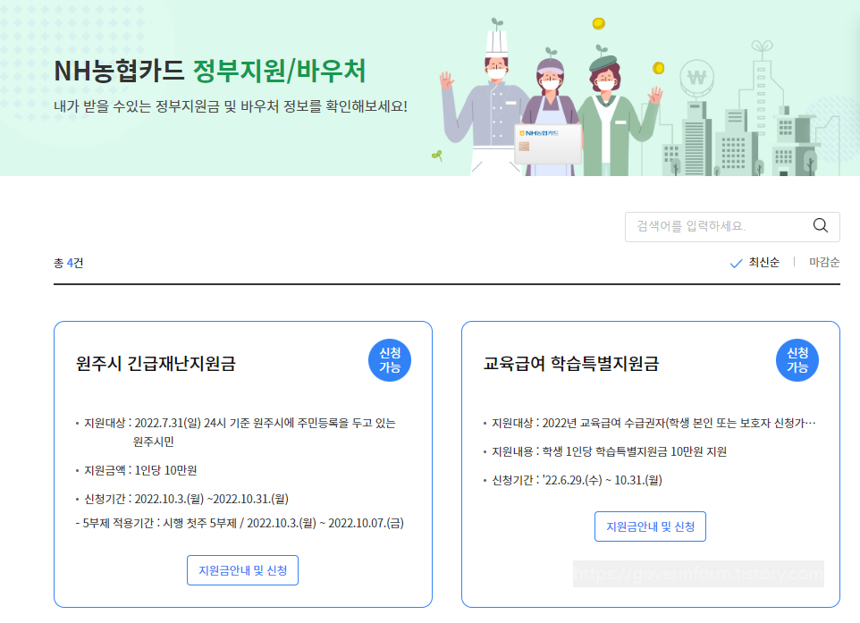 고객센터 외에도 농협카드 홈페이지에는 정부지원, 바우처 정보를 확인할 수 있습니다. 더 자세한 내용이 필요하신 분은 농협카드 홈페이지에서 확인하시기 바랍니다.