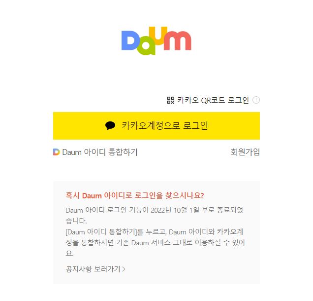 다음이 카카오로 변경된만큼 카카오계정으로 로그인을 해야합니다. 카카오계정 로그인 방법은 다음과 같이 두가지 방법이 있습니다.
