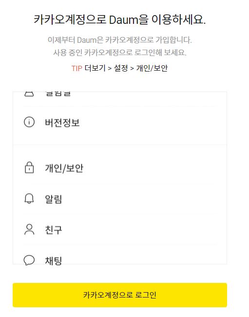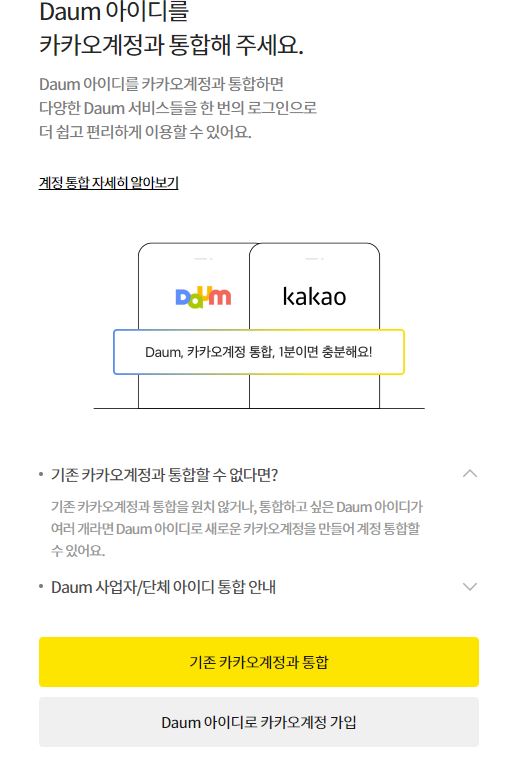 (1) 카카오계정+다음아이디 통합하기 를 먼저 한 후에