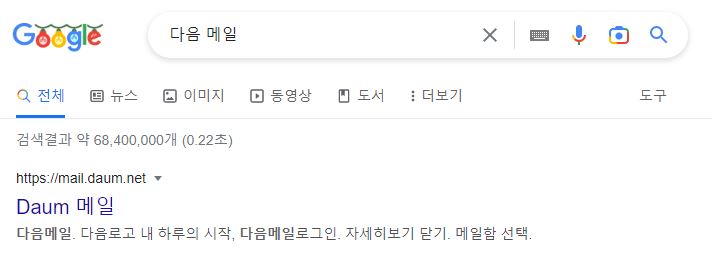 구글 검색창에 다음 메일을 검색하면 됩니다. 다음 메일 또는 다음 홈페이지 https://www.daum.net/ 에 접속합니다.