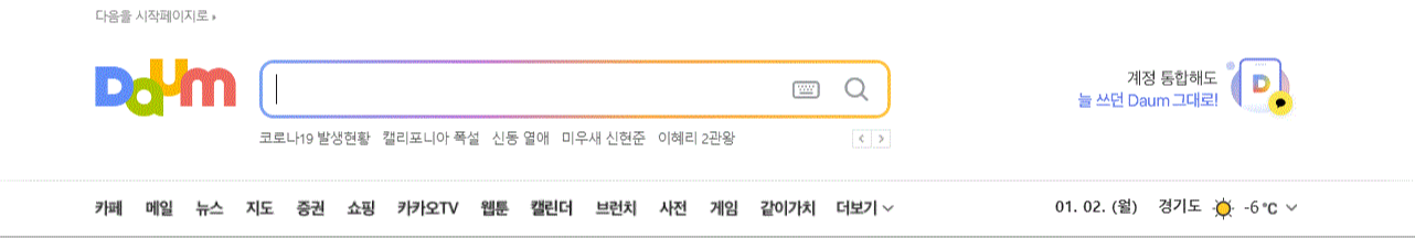 구글 검색창에 다음을 입력하고 다음 홈페이지에 접속했습니다.