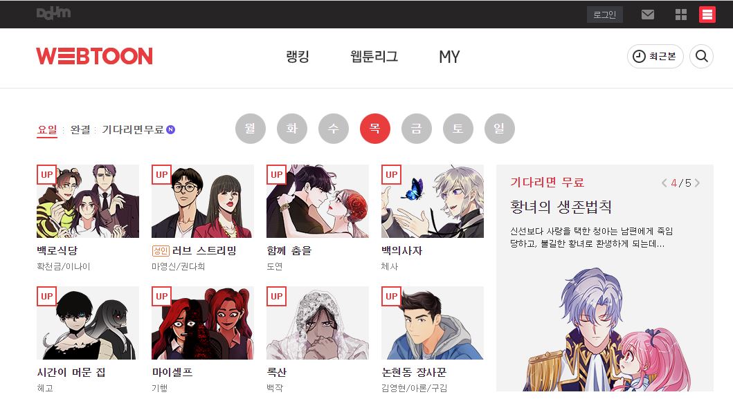 다음 웹툰은 다음에서 하고 있는 웹툰 서비스로 사이트에 연재되는 단행본 웹진을 감상할 수 있는 곳입니다.