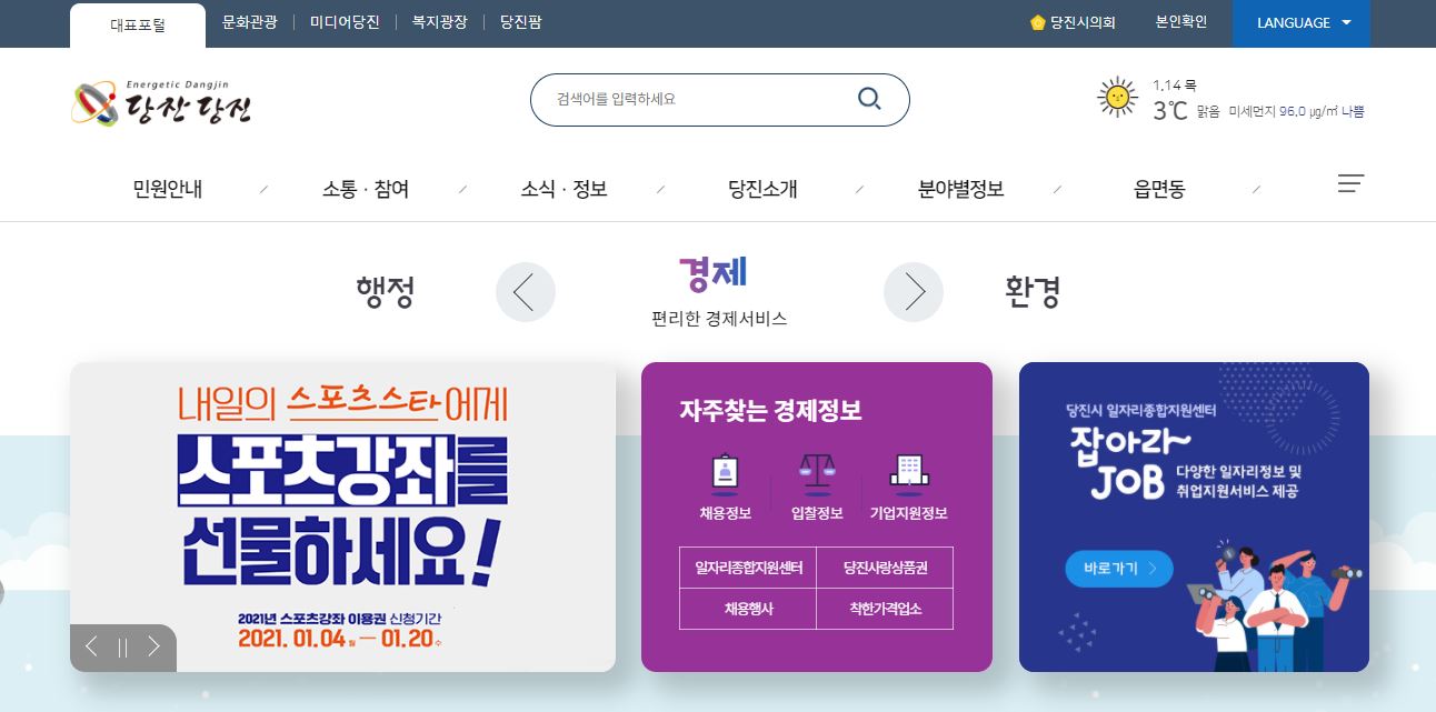 당진시청 홈페이지는 포털사이트 검색을 통해 접속하거나 아래 원클릭 링크를 이용하시면됩니다.