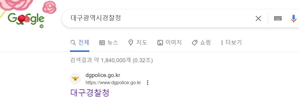 구글이나 평소 이용하는 홈페이지 검색창에 대구광역시를 입력하면 대구광역시 경찰청 홈페이지 주소(https://www.dgpolice.go.kr)가 나옵니다. 여기에 접근하면 대구광역시 경찰청 홈페이지 이용이 가능합니다.
