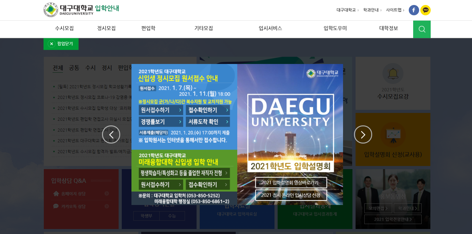 대구대학교 입학정보를 위해 입학처 홈페이지에 방문하는 분들이 많습니다.