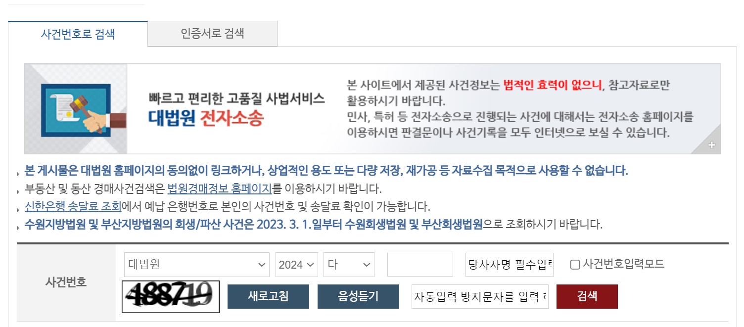 (대법원 나의 사건검색 바로가기)