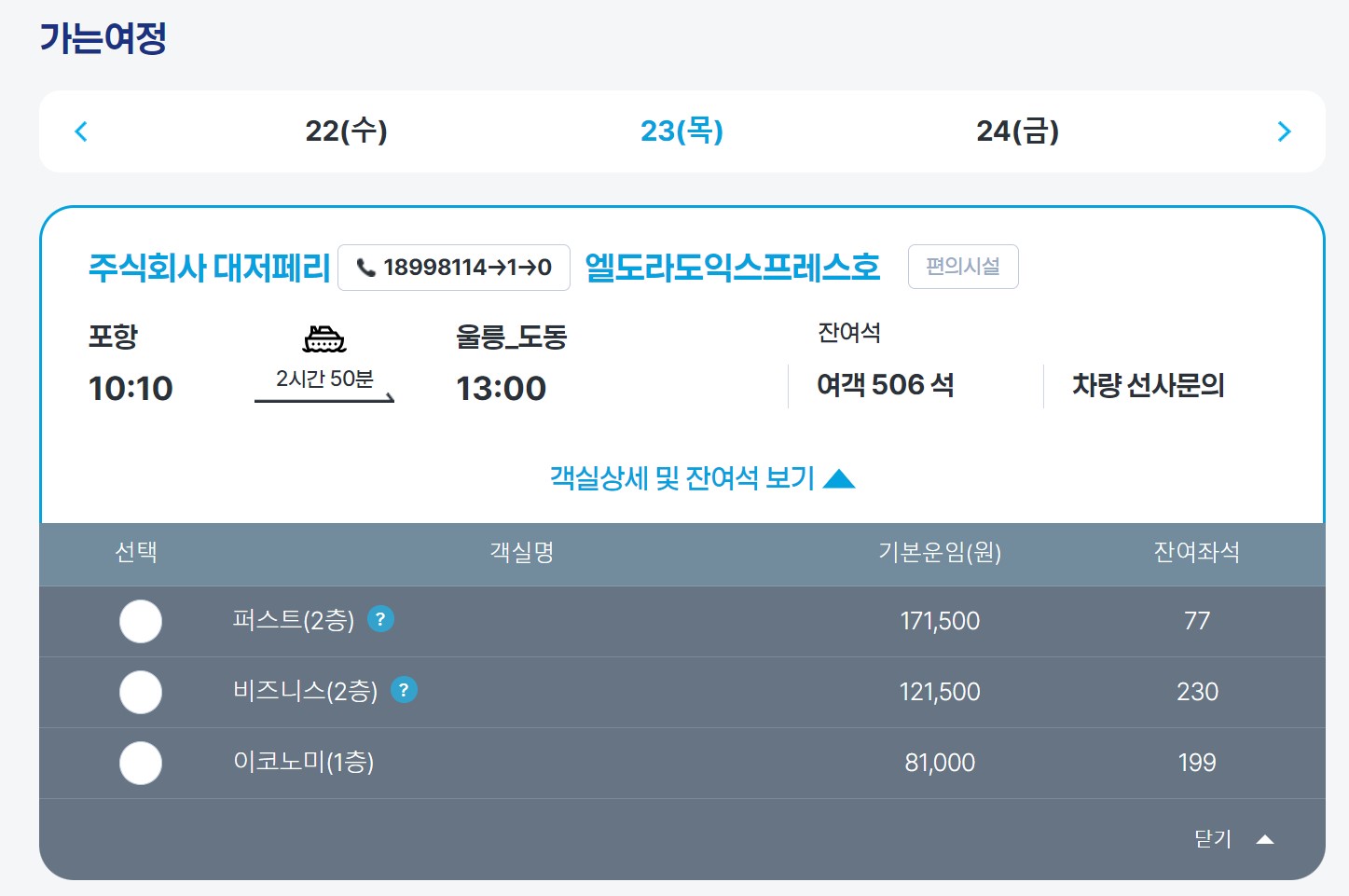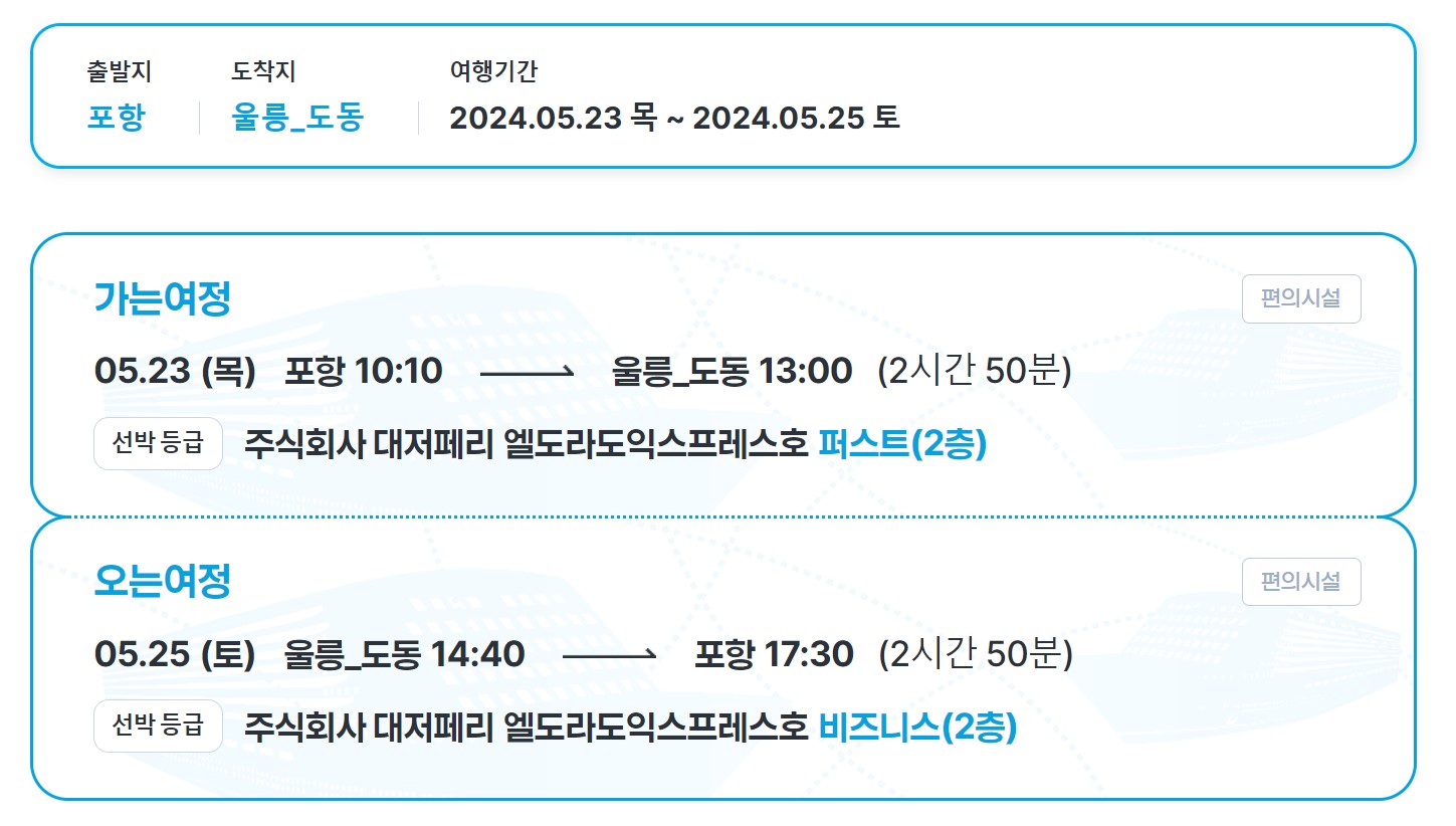 | 소요시간 | 포항-울릉 편도 2시간 50분 |