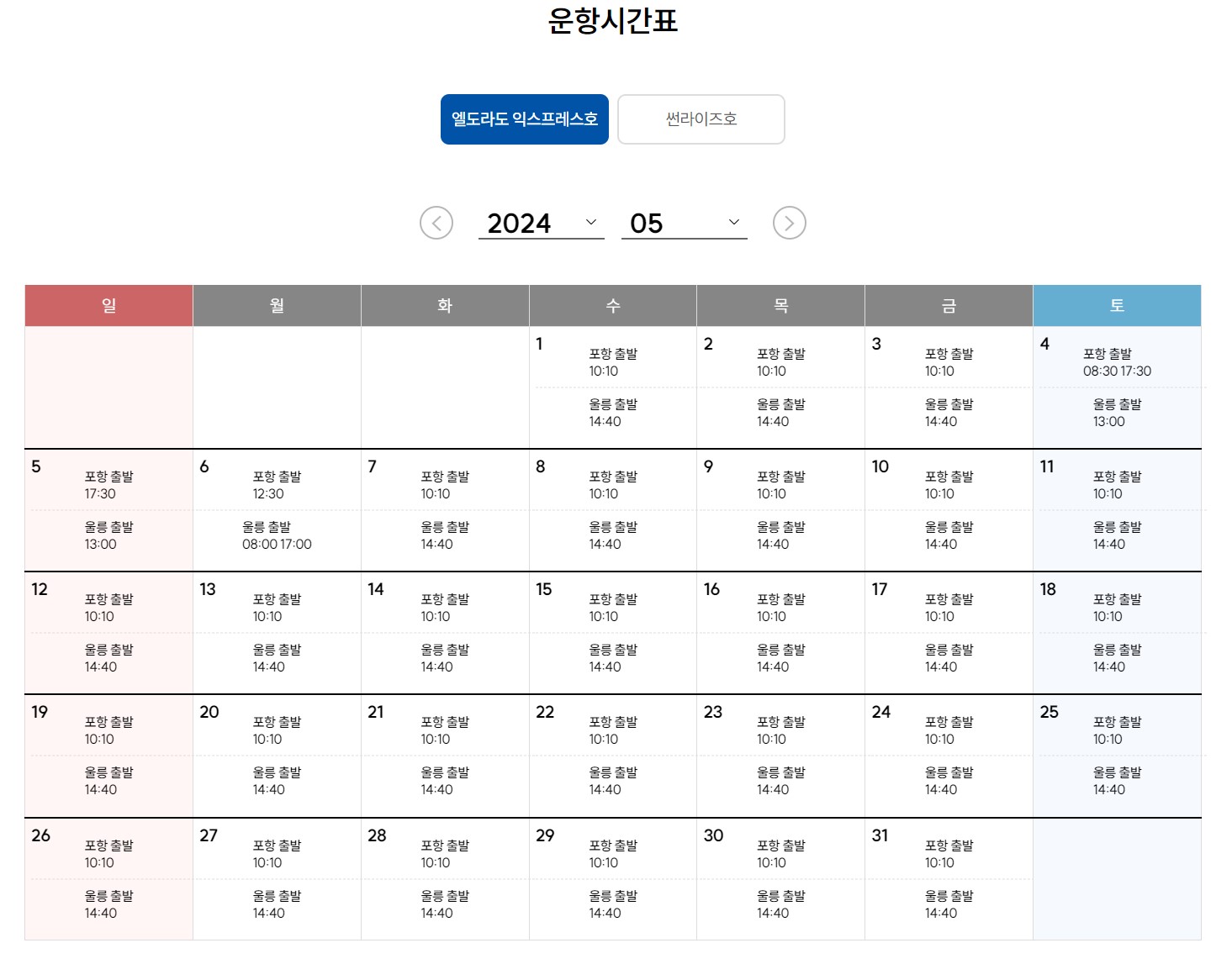 아래 링크에서 운항시간표를 확인할 수 있어요.