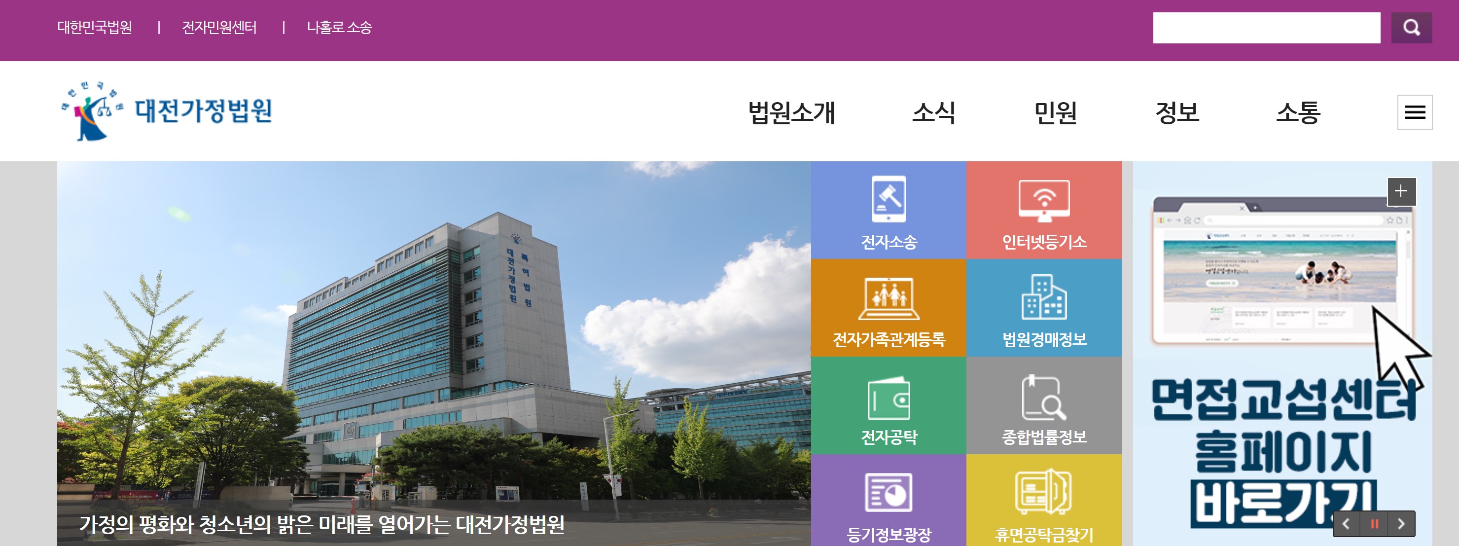 대전가정법원 홈페이지입니다.