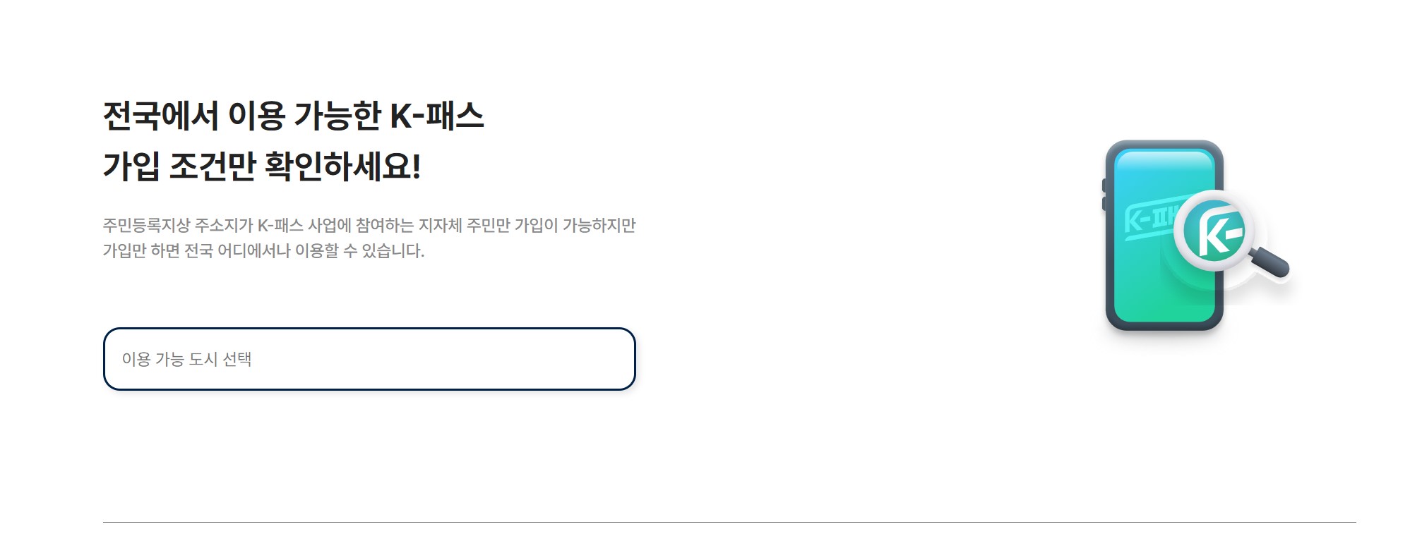전국에서 이용 가능한 K-패스 가입 조건을 아래 그림을 터치하고 확인하세요!