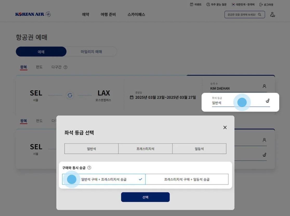 2. 항공권 업그레이드하기
