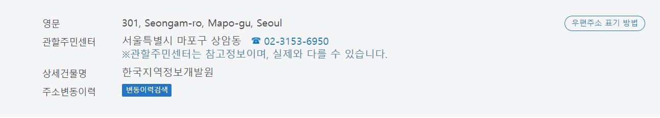 5. 관할주민센터, 상세 건물명, 그리고 영문 주소까지 확인할 수 있습니다. 한 번의 검색만으로 주소와 관한 정보를 찾을 수 있어 편리합니다.