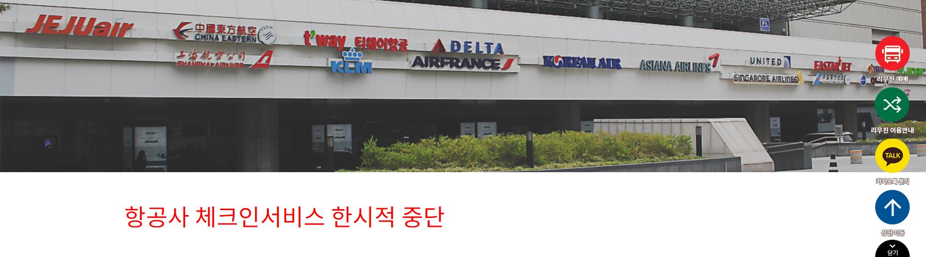 도심공항터미널 체크인은 잠정 중단 되었습니다.