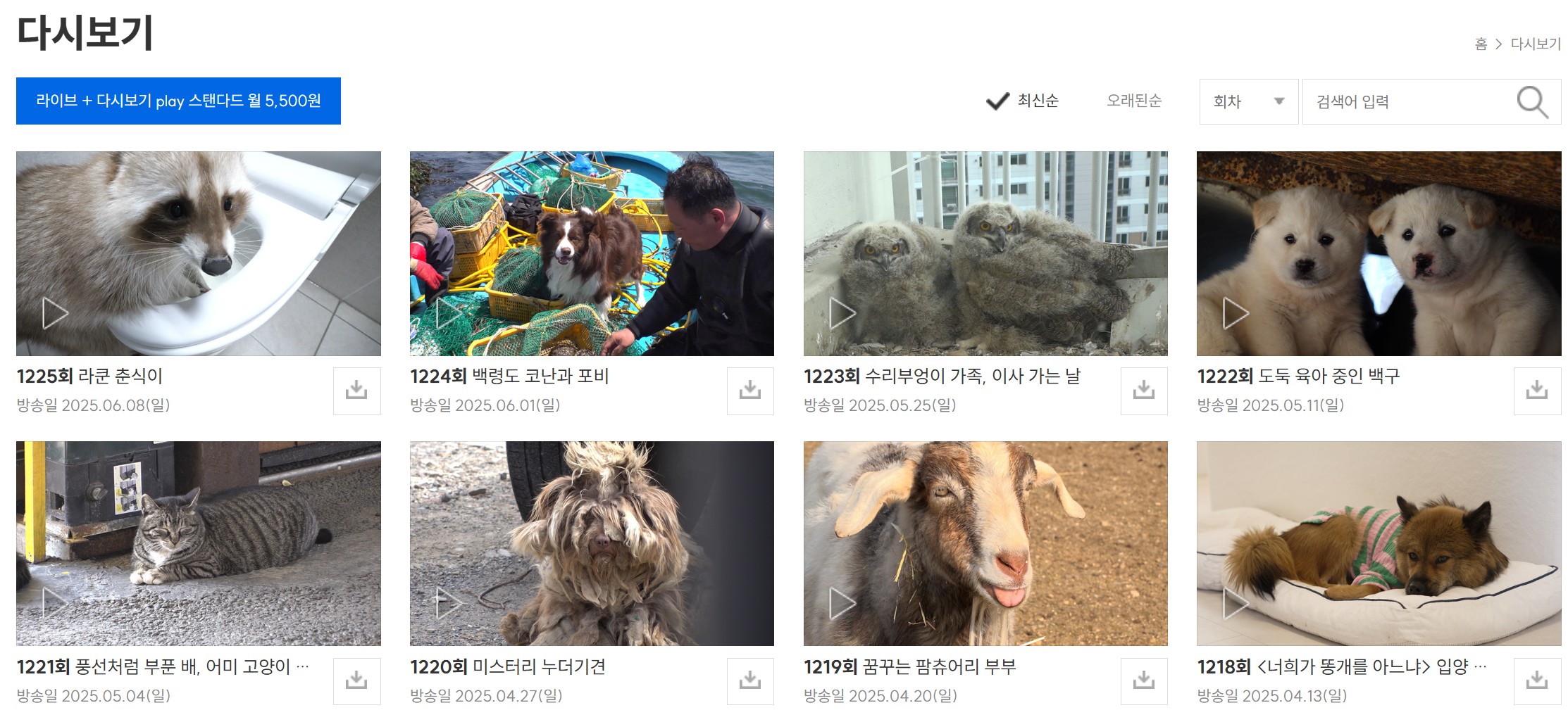 매주 일요일 오전 9시 30분 본방송! 매주 월 오후 12시 동물농장 신작 다시보기