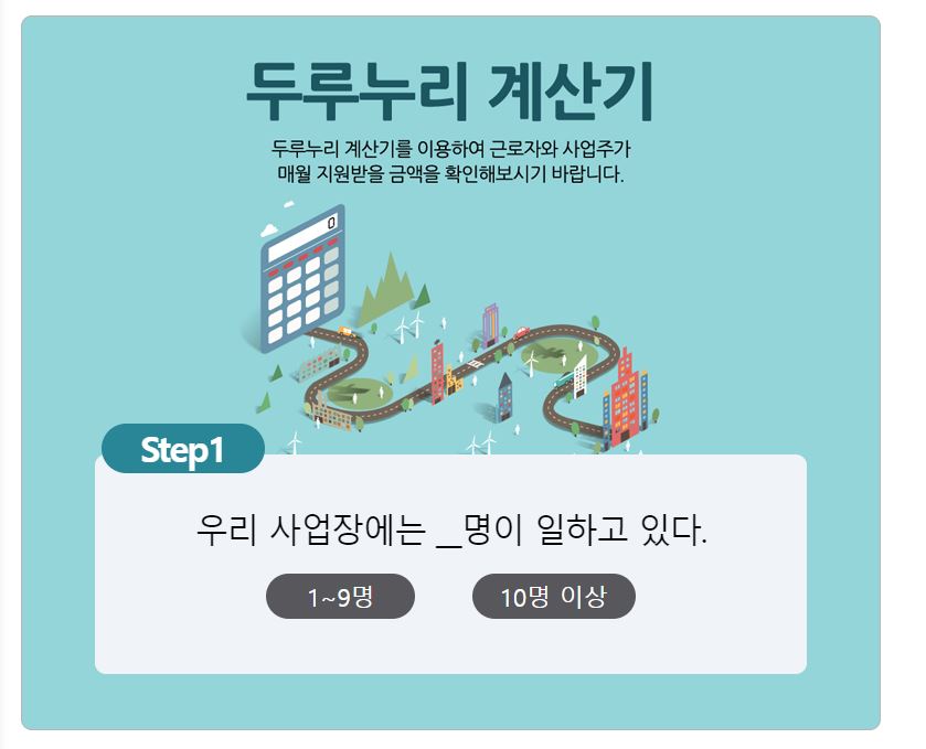 두루누리 지원사업에 내가 신청할 수 있는지 하단 "두루누리 계산기"를 이용해서 알아보면 3초만에 확인할 수 있습니다.