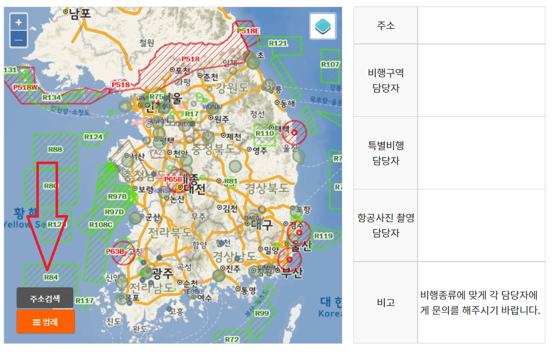드론 비행가능지역 검색 바로가기